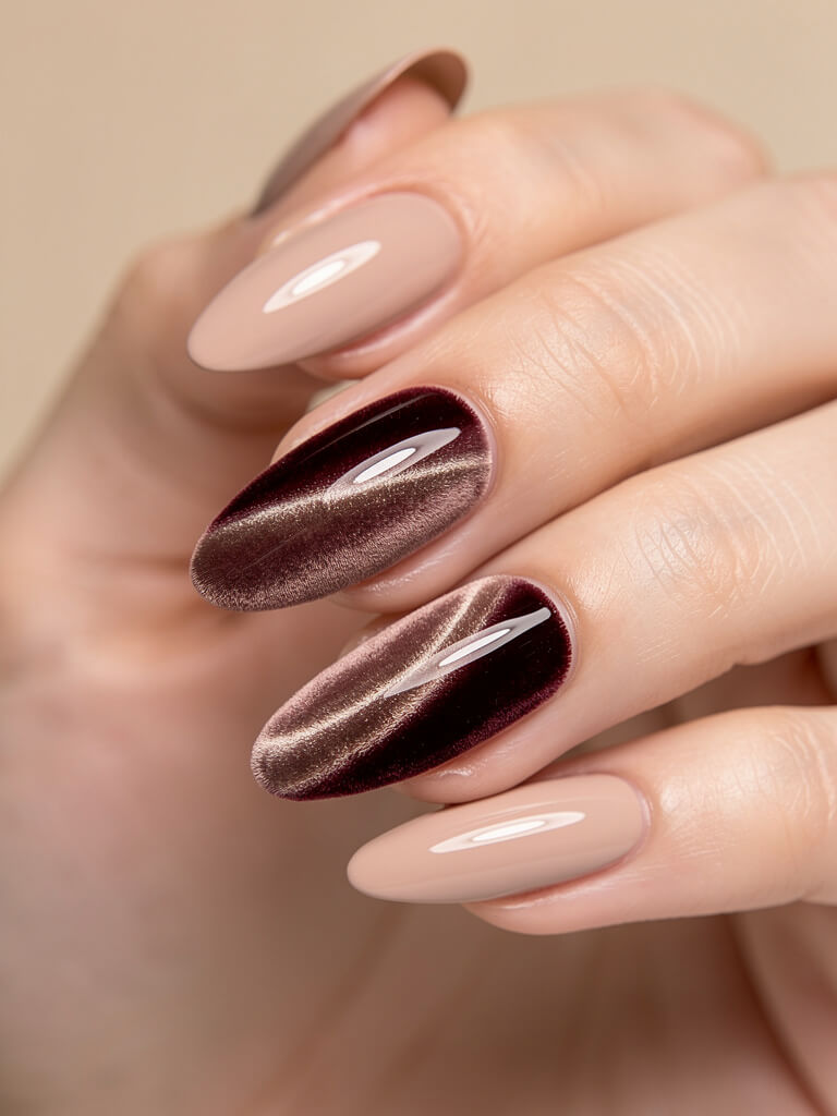 Browse velvet and chrome nail art - rich velvety textures, mirror chrome finishes, and bold metallic manicures that make a statement.